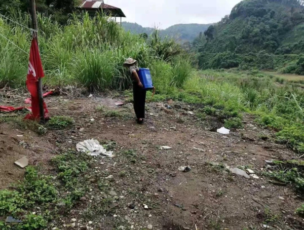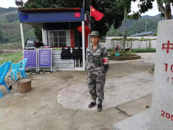 在边境执勤点上,一个帐篷,一张简易办公桌、一个体温计、一个登记本,52岁的段兴团和其他执勤同志就开始值守,一坚持就是300多个日日夜夜。自2020年春节疫情防控工作开展以来,段兴团在田尾支部设置体温检测点,她带头对来往人员进行登记消毒、逐户排查返乡人员、走访隔离家庭、进行庭院消毒等等,严格落实管控措施。为了让居民了解疫情防控知识,她给居民发放宣传页、张贴公告,给居民讲解防疫知识,引导居民少出门,出门戴口罩,做好自我防护。