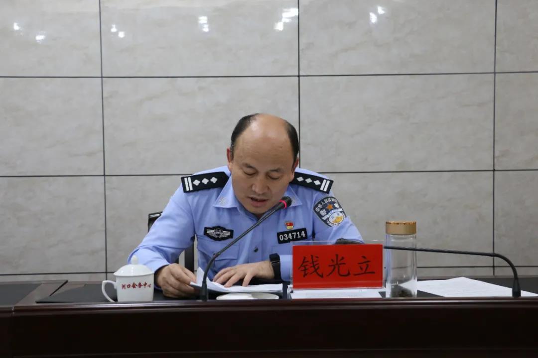 会上,县委常委、县委政法委书记李钢就群众安全感满意度工作作讲话,县政府副县长、县公安局局长钱光立通报了河口县近三年命案防控及电信网络诈骗防范工作情况。