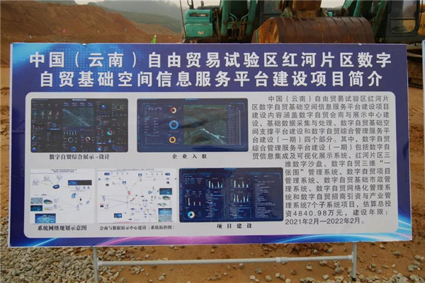 中国(云南)自由贸易试验区红河片区数字自贸基础空间信息服务平台建设项目将加快河口“区县”5G产业体系的构建,推动互联网、大数据、人工智能与自贸区加工及贸易、大健康服务、跨境旅游、跨境电商等深度融合发展,带动一批重大数字化项目建设,将红河片区建成面向东南亚沿边开放数字经济合作高地。