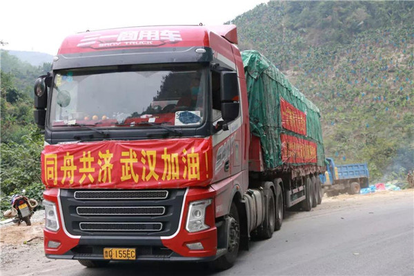 2月5日上午,河口县莲花滩乡石板寨村坡头93户村民自发捐赠的22吨爱心香蕉顺利运抵湖北黄石。