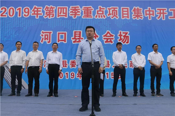 开工仪式上,杜应昆宣布中国(云南)自由贸易试验区红河片区、河口县2019年四季度重点项目正式开工。