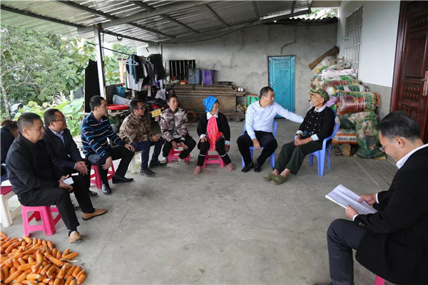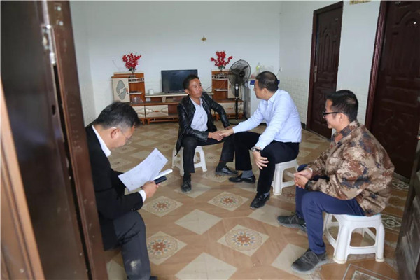 在瑶山乡牛塘村,周踊先后走访了挂钩联系户邓东财、邓金明和李永贵,深入他们家中,与他们亲切交谈,嘘寒问暖,详细了解他们的生产生活情况及脱贫政策落实情况,同时鼓励他们要坚定信心,依靠国家政策与自身的努力,早日脱贫致富。