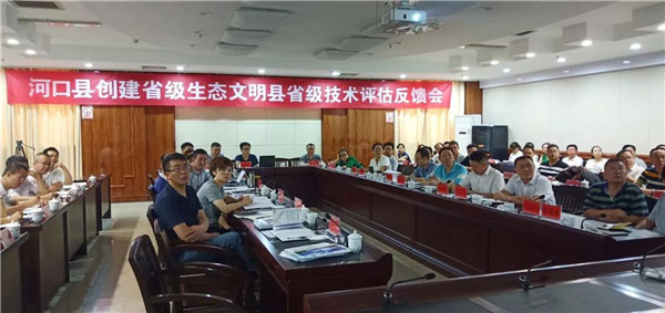 在技术评估反馈会上,技术评估组听取了河口县创建省级生态文明县工作情况汇报,听取了州级技术审查情况汇报,并观看了河口县创建省级生态文明县专题片。