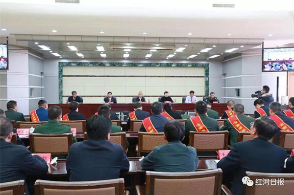 全省会议结束后,红河州举行了云南省第十届双拥模范命名表彰大会红河州分会场代授牌仪式。州委书记姚国华出席仪式并讲话,州委副书记、州长罗萍,州政协主席聂明等出席,州委常委、蒙自军分区司令员柴勇主持。