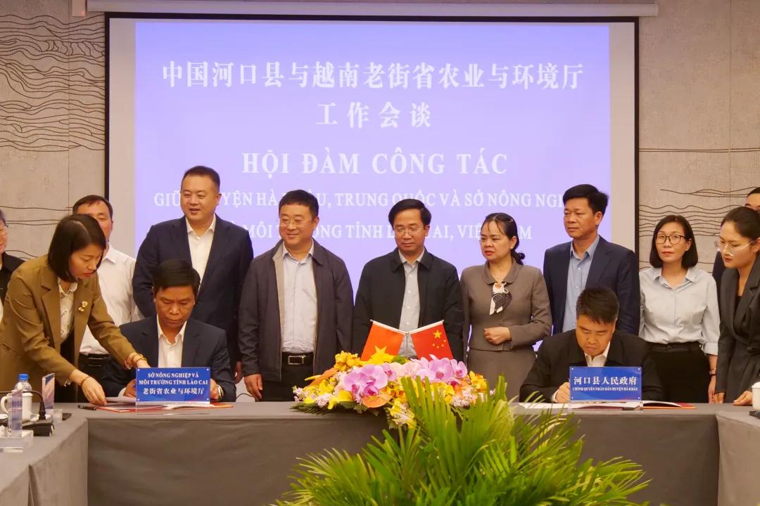 于洋表示,近年来,河口与老街合作步伐坚实,此次签署合作文件是落实中越共识的关键举措。希望双方建强联合工作组机制,深化特色农业资源与市场对接,协同治理跨境生态环境,推动农产品通关标准互认、检测结果互通,打造口岸合作典范,以务实合作开创农业与环境领域合作新局面。