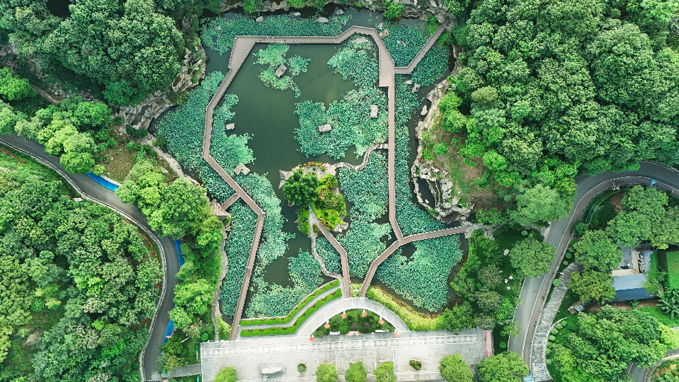 傍晚时分,步入国家3A级旅游景区河口口岸森林公园,园内树木花草高低错落,荷花亭亭玉立,一步一景,一眼一画卷,满眼尽是勃勃生机。许多市民沿着栈桥散步锻炼,孩童在池塘边喂鱼嬉戏,尽情享受“城在景中,景在城中”的生态宜居之美。