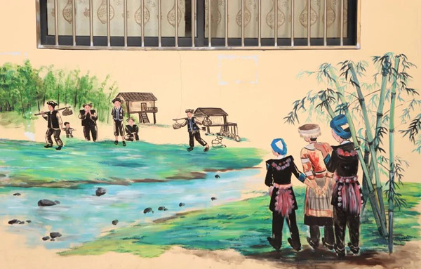 一面墙,一道风景,勾勒着边疆少数民族阔步迈进小康的美好景象。走进河口县老范寨乡小牛场小组,崭新洁净的水泥路连接着家家户户,乡间田野,蓝天白云与一幅幅别具特色的乡村振兴主题壁画相映生辉;休闲凉亭里,几个身着民族服饰的老人惬意地围坐在一起,话着家长,淳朴的民风勾起了一抹浓浓的乡愁……