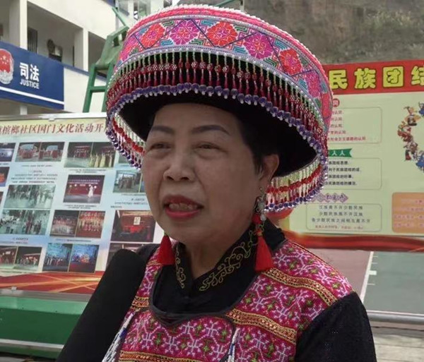 因为我们社区的民族比较多,我就是苗族的典型,经常组织我们学习,平时组织我们去宣传时,我们都是穿我们的少数民族服装去,去发过传单,就是挨家挨户地敲门发传单搞宣传,还有平时我们去搞“六城同创”和“创卫”这些,大家都是很踊跃地参加。