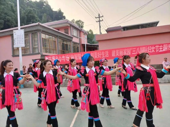 中华民族一家亲,同心共筑中国梦。蜿蜒而上的水泥道路,平坦而延续,一头连着城市的喧嚣,另一头连着深山的静谧。在民族团结进步示范创建工作中,小牛场的瑶族群众结合实际建设了小组村史室,深入挖掘小组的村史村情、文化底蕴和民族风俗,将保留至今的精美瑶族服饰、动听的歌谣、粗犷的舞蹈和独特的民族风俗展现在大众的视野中。此外,小牛场的老组长盘卫明根据村子的实际,结合瑶族文化元素设计建设了乡村大舞台,并组建了远近闻名的小牛场蓝靛花文艺队,2016年成功申报了农民演出团体三年扶持行动计划项目,浓浓的民族认同感和归属感扑面而来。