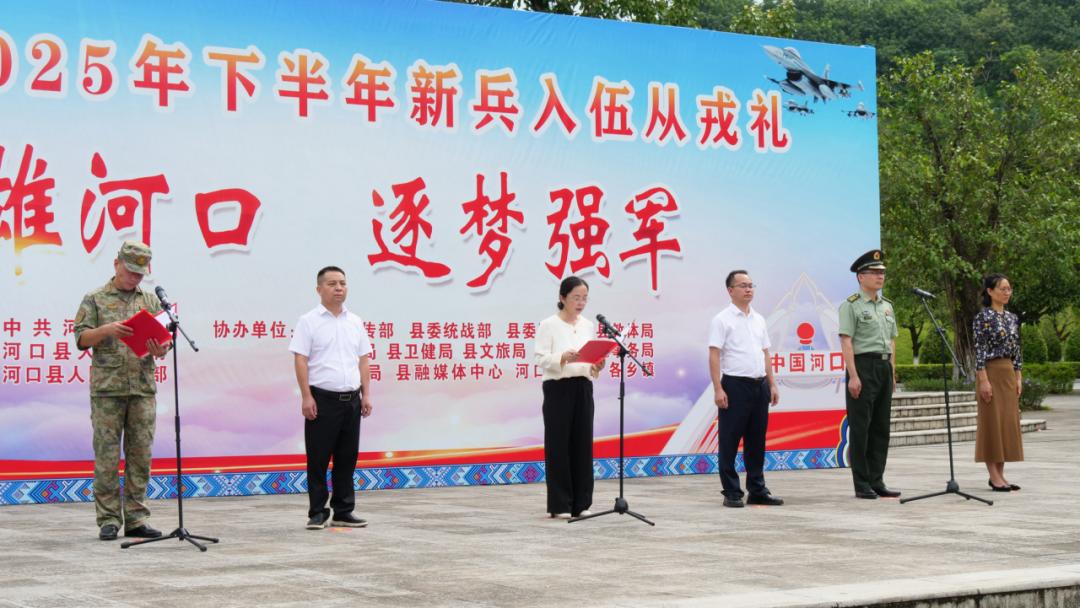 9月15日,河口县举行2025年下半年新兵入伍“从戎礼”活动。县委副书记、县长、县征兵领导小组组长邓瑞出席并致辞,李开祥、杨光云、岳占军、郭连顺、李华梅等县领导出席。