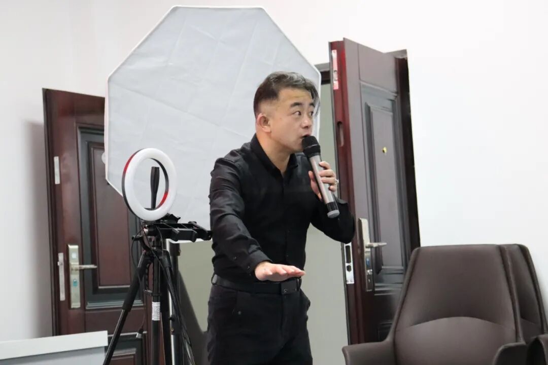 在这半个月的培训中,课堂上,老师与学员经常互动,面对面进行基础实操的交流和指导,学员们激烈讨论、反复斟酌、认真制作,现场气氛热烈而活跃。尤其是在“直播带货”专题培训中,林子靖老师从直播搭建、直播选品、直播实操、脚本策划、带货话术、语言禁忌等方面进行一一讲解,内容连贯紧凑,可操作性强。在实操课上,学员按照老师的指导打开手机直播功能,体验当上主播的感觉,用引导话术介绍手中的产品,进行一场场实操讲解。林子靖老师对学员的试讲进行复盘,说明哪些可以保留,哪些可以不要,哪里讲解过多会影响直播效果。